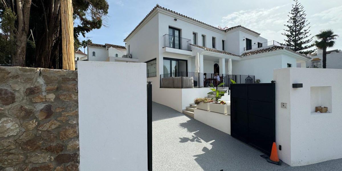 Newlook Surfacing recently joined Raybell & Sons in Marbella to help complete a Vuba Resin installation. The project consisted of 70sqm of stone resin bound in the Vuba colour blend Poseidon. The homeowners were in the process of completely renovating the entire property, therefore requiring a new driveway installation to finish the modern look. Take a look below at the before photos.